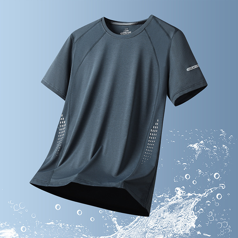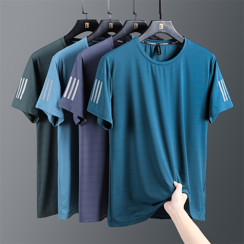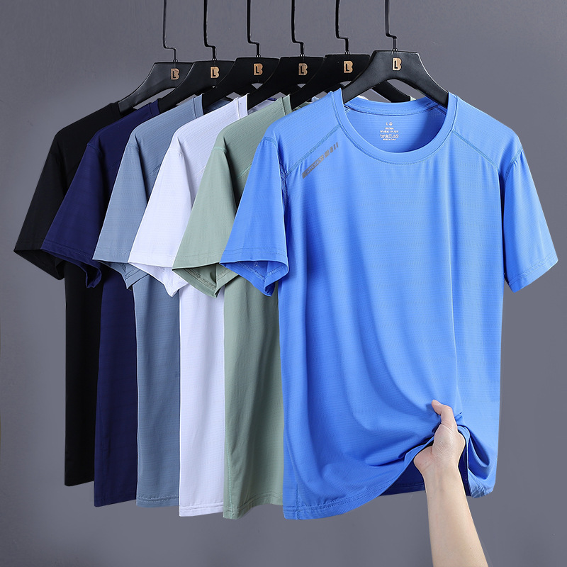 半袖tシャツ夏の新型男性アイスtシャツ速乾性薄い丸襟tシャツランニングバスケットボール服スポーツウェア