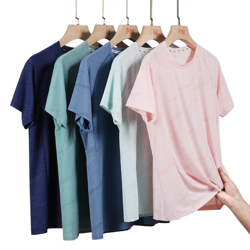 2024夏の新型スポーツレジャー氷糸半袖男性速乾氷感弾力性通気性ゆるい女性丸襟プリント