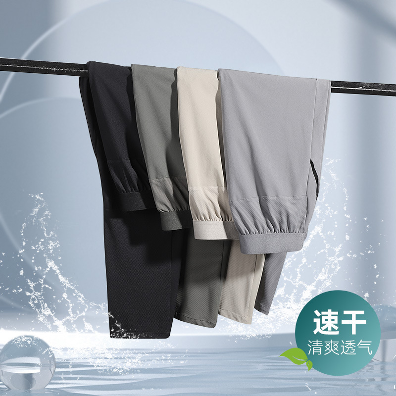 速乾のズボンの男性の夏の薄いタイプのスポーツのズボンの男性の大きいサイズの運動のレジャーの9分のズボンの通気性の氷の糸のランニングのズボンの男性のタイプ