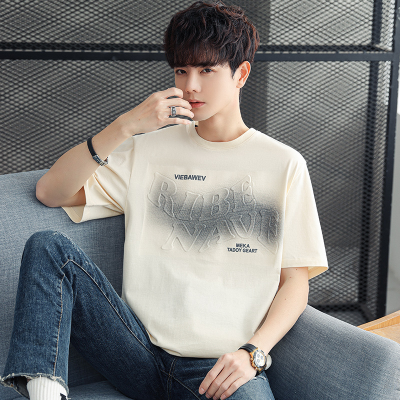 メンズtシャツ半袖2024夏新作ファッションカジュアル丸首学生思いやりメンズtシャツ男