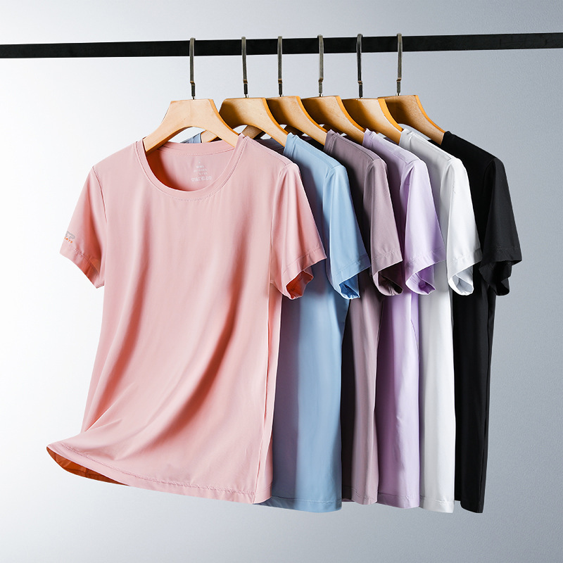 2024夏氷糸半袖tシャツゆるい大サイズ速乾カップルアウトドアスポーツ速乾服tシャツ