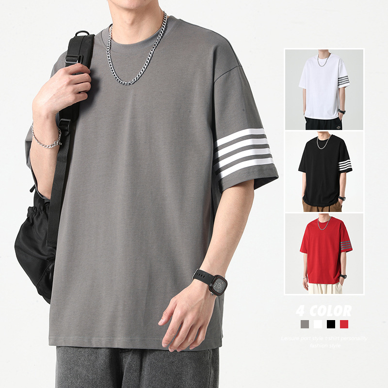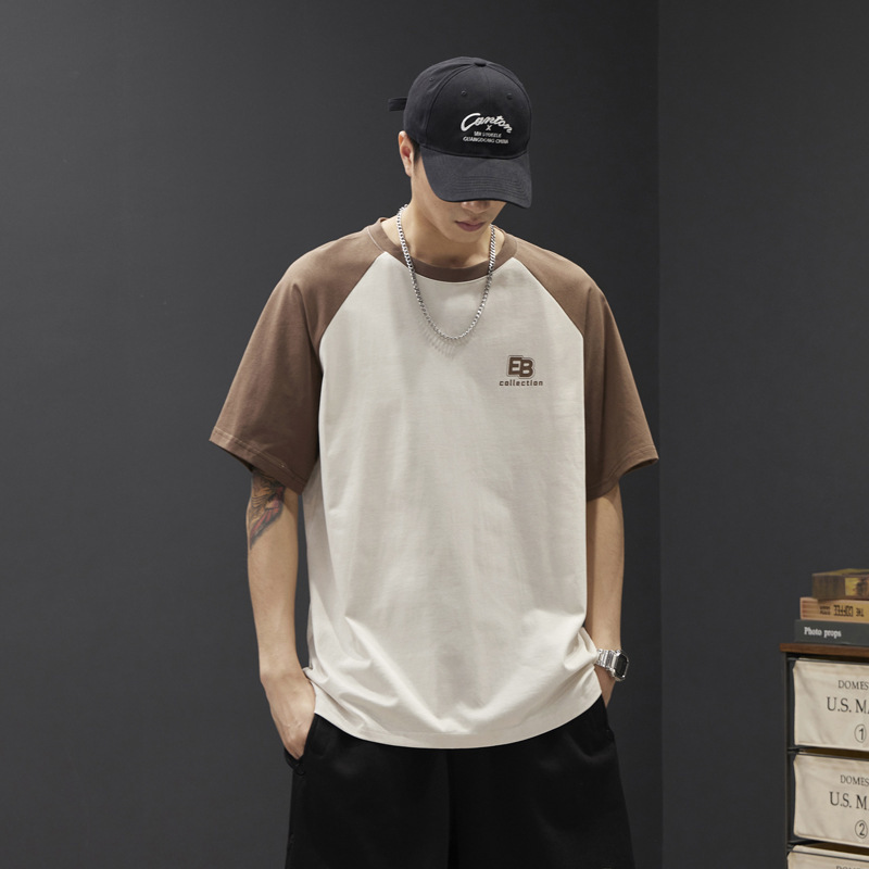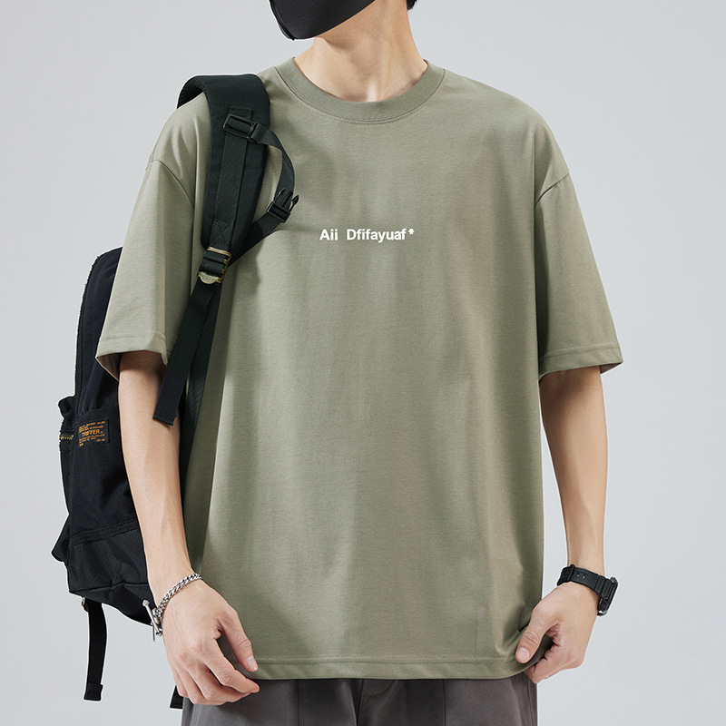 Tシャツ男2024夏新品tシャツ半袖トレンドゆるい香港風丸襟落肩潮牌レトロカジュアル