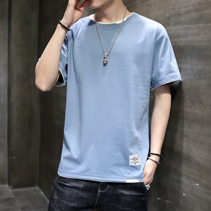 半袖紳士服日系衝突色プリント丸首半袖tシャツ男性夏シンプル百合潮牌五分上着
