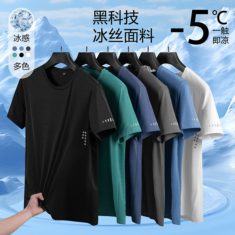 氷糸半袖tシャツを着て男性半袖氷糸tシャツスポーツ半袖氷糸半袖トレンド