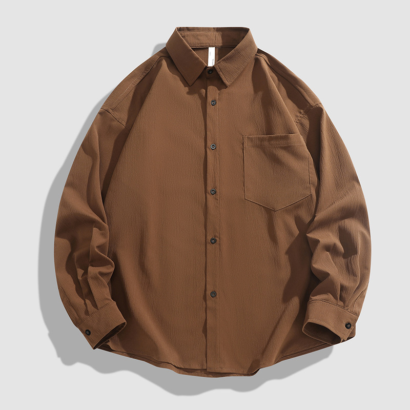 春秋の薄い長袖のシャツの上着の男性の新型のファッションのゆったりした純色の上着の香港風の格好いいカジュアルなシャツ