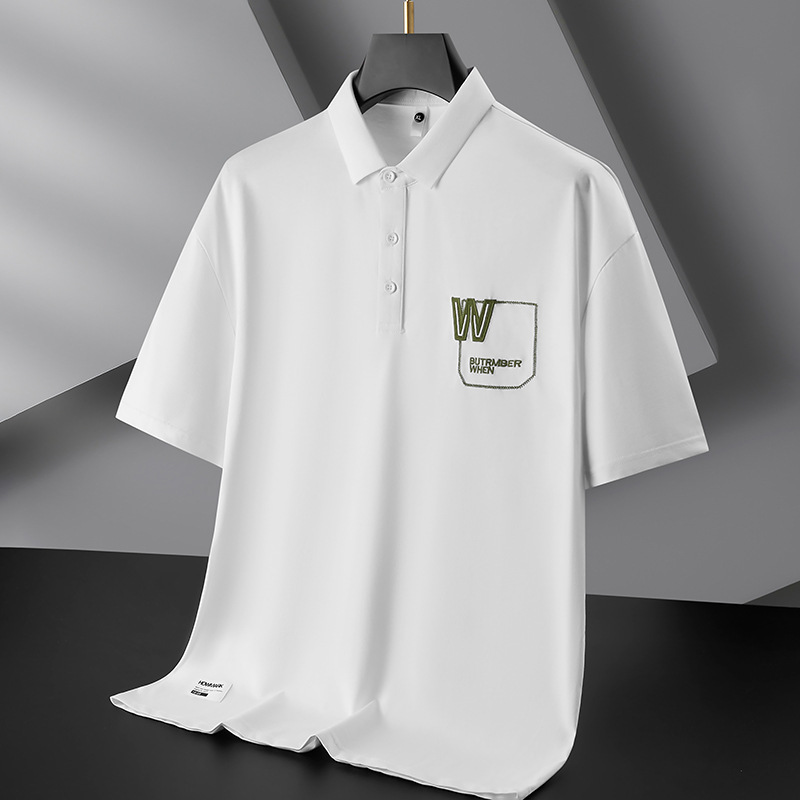 绢糸ポロシャツメンズ半袖tシャツ2023夏新作ビジネスカジュアル純色折り襟ポロシャツ男