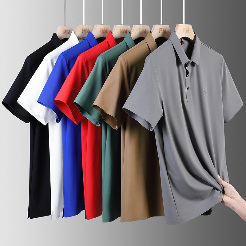 氷糸poloシャツ男性2023夏新純色襟シルク滑りカジュアル弾力半袖tシャツ男性薄いタイプ