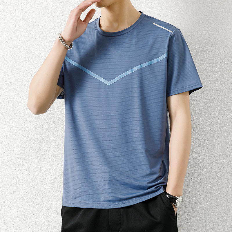 夏の氷の糸の半袖のtシャツの男性の項の軽薄で通気性があります。