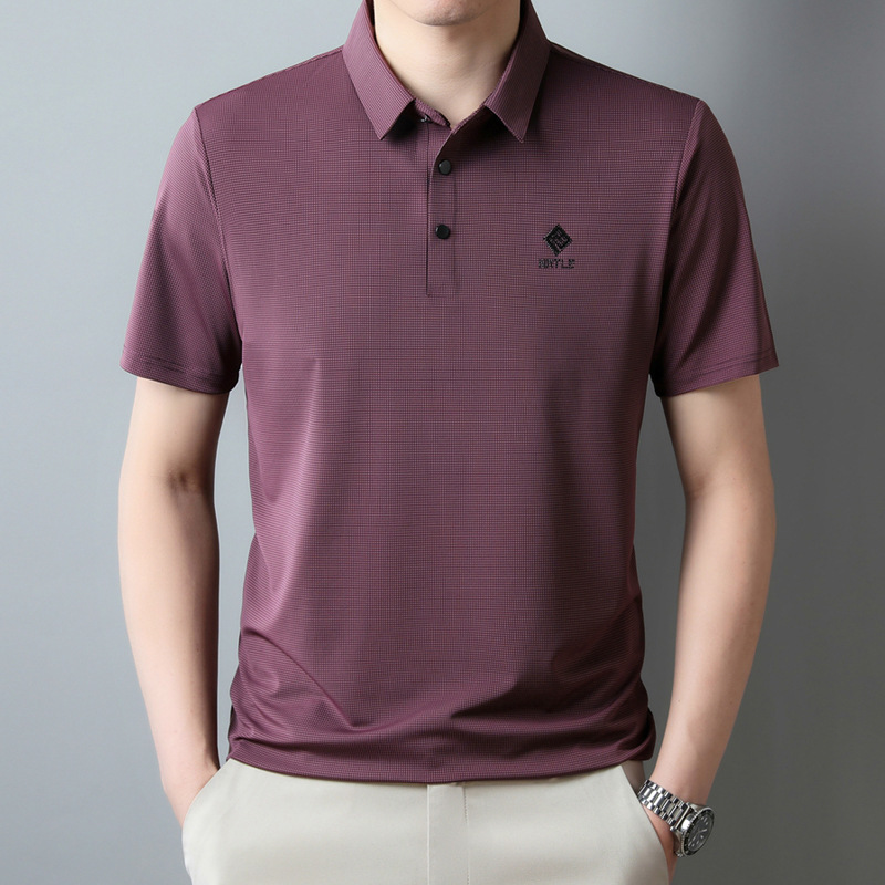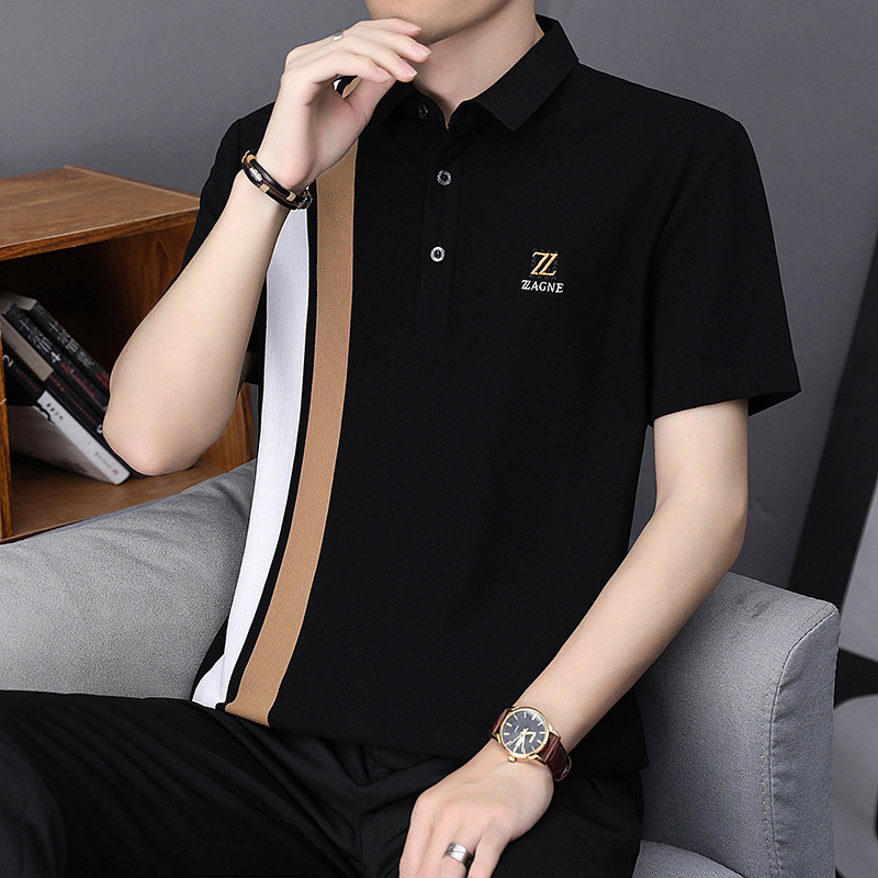 夏の氷糸poloシャツ半袖tシャツ男性襟tシャツ中青年弾力軽熟カジュアルpoloシャツ男性服