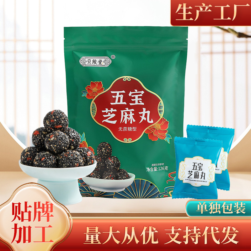 五宝黒胡麻丸一粒126グラム砂糖なしゴマボールネット赤スナック辟谷丸五珍胡麻丸