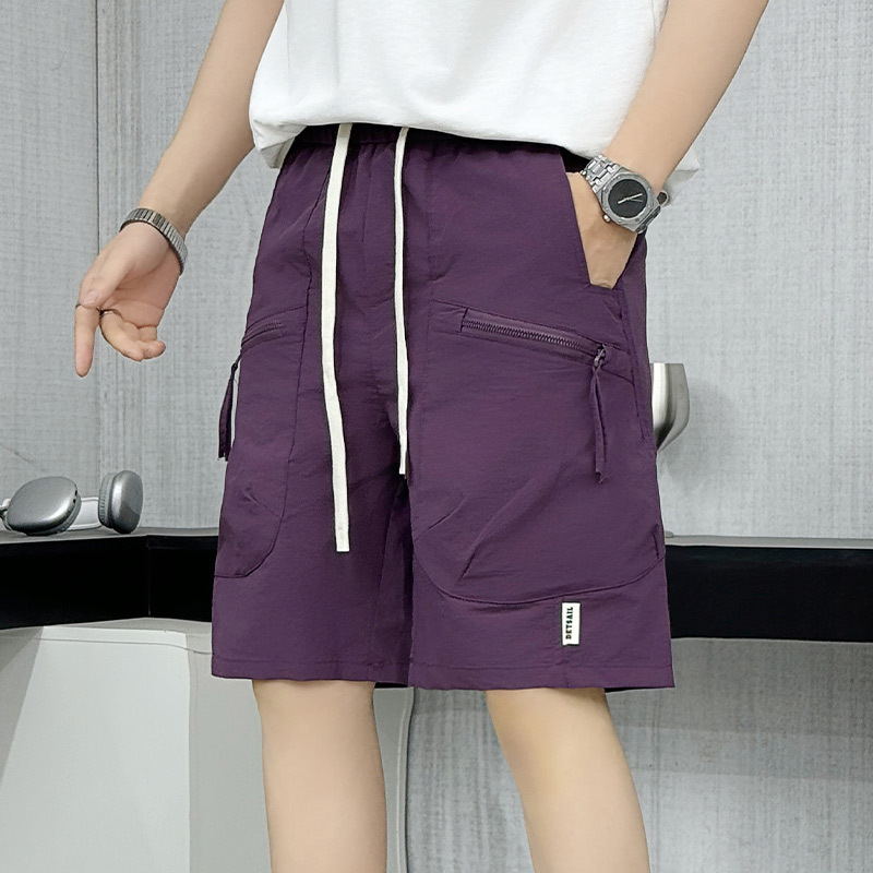 メンズトレンディなアイスシルク速乾性ショーツ夏のトレンディなハンサムカジュアルパンツ 2025 新しいメンズ薄いスポーツパンツ