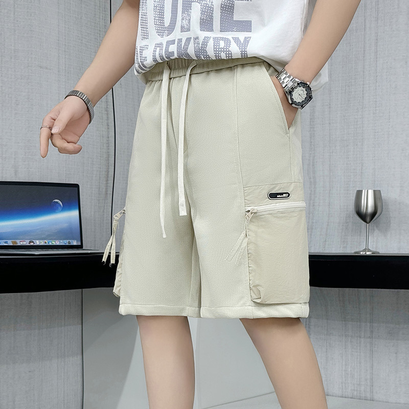 ヨーロッパとアメリカのハイストリート春夏ショーツアメリカンスタイルパッチワークポケット弾性ウエストレースアップジッパーポケットショーツカジュアルパンツ