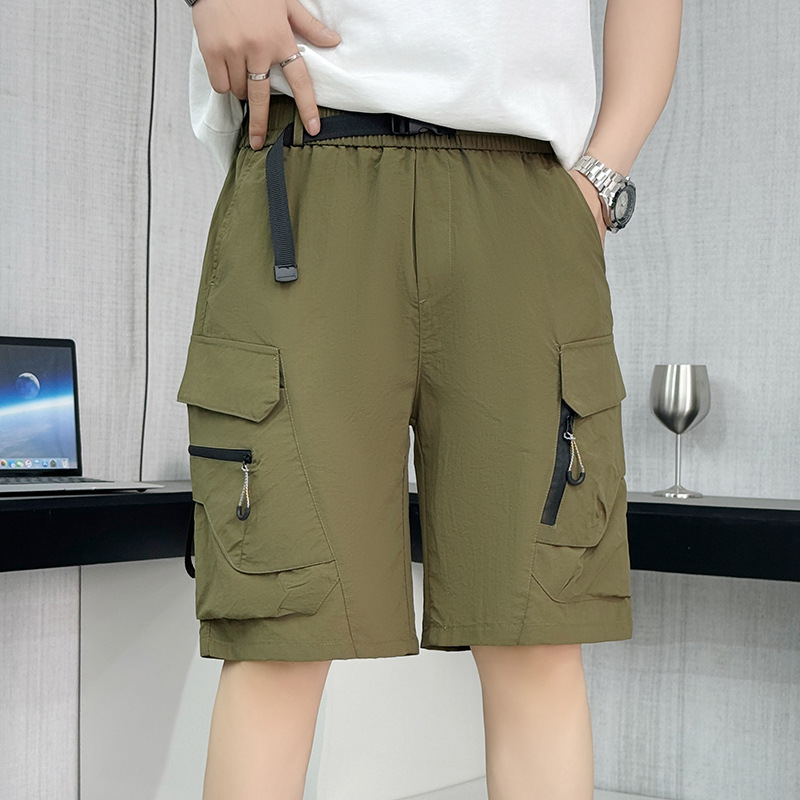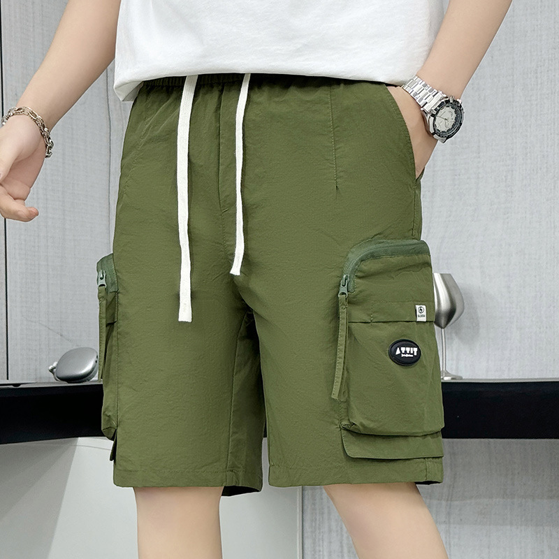夏薄いアーミーグリーンカーゴショーツメンズ 2025 新しいアイスシルク速乾性ルーズサイドポケットミッドパンツ 5 点パンツ