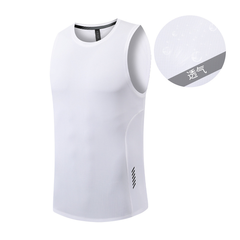 メンズ速乾性弾性通気性アイスシルクベスト夏軽量フィットネスランニングトレーニングウェアノースリーブラウンドネックトップ