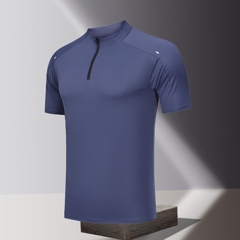 ディサンと同じ無地ハーフカラーネック半袖Tシャツ通気性、速乾性、涼しさアウトドアブラックテクノロジー工場卸売クロスボーダー