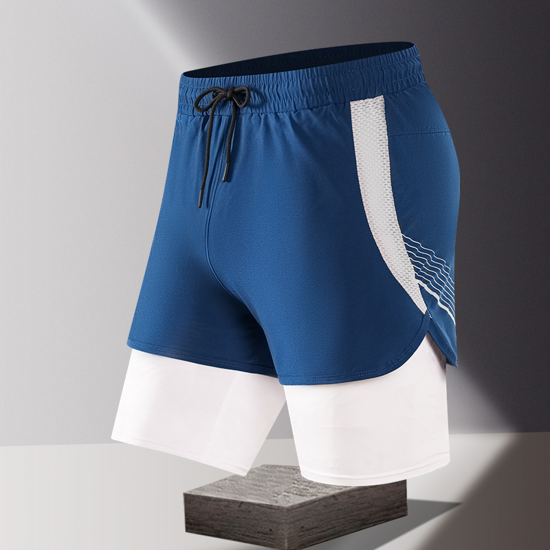 夏の新しいメンズ韓国スタイルの軽量偽ツーピースアイスシルク日焼け止め速乾性スポーツショーツトレンディなインターネットセレブと同じスタイルのビーチパンツ
