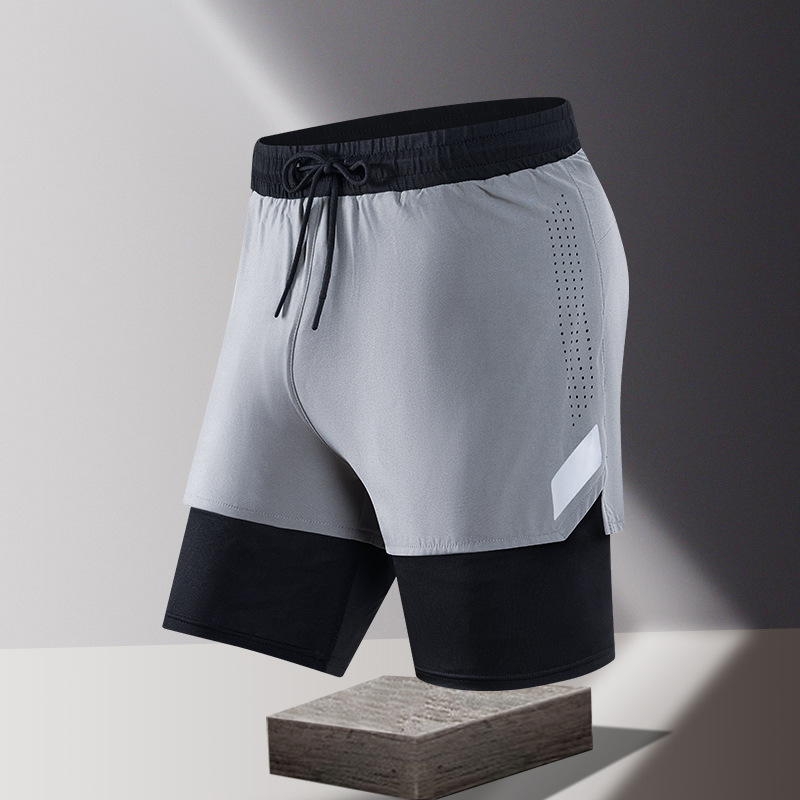 夏のメンズスポーツショーツ新しいメンズ夏速乾性大きいサイズメッシュボクシング偽ツーピースフィットネスミッドパンツ