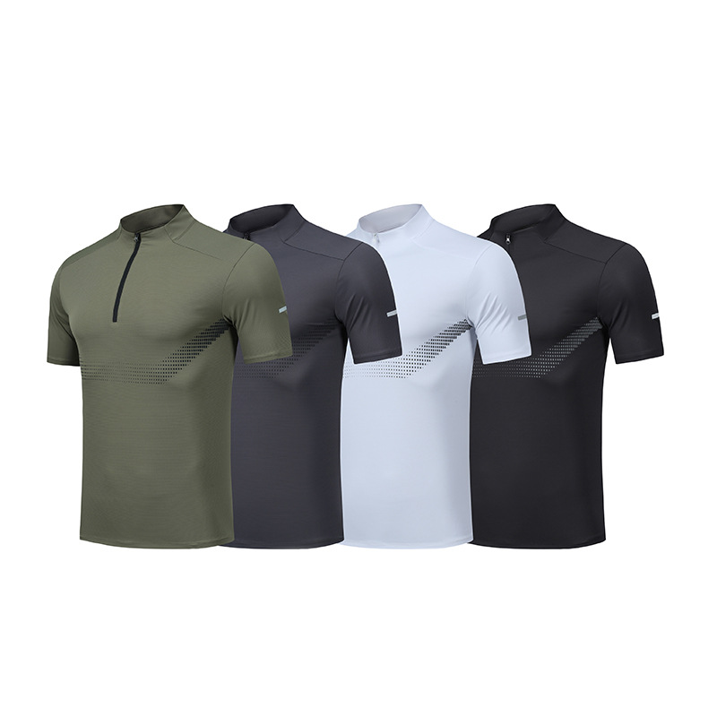 2025 新しい Tシャツアウトドアスポーツランニングフィットネスクロスボーダー速乾性ハーフジッパーメンズ高弾性長袖