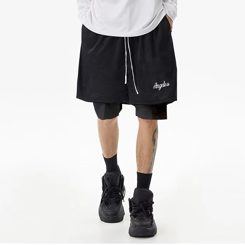 新しい夏のスポーツショーツメンズメッシュ速乾性通気性ランニングレッグトレーニング穴布筋肉フィットネスバスケットボールトレンド