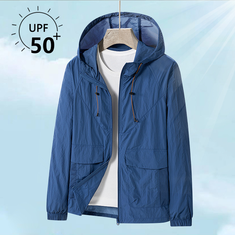 男性用夏の日焼け止め服、薄くて通気性のあるスポーツウインドブレーカー、トレンディなアウトドアフィッシングウェア、ジャケット、スキンウェア