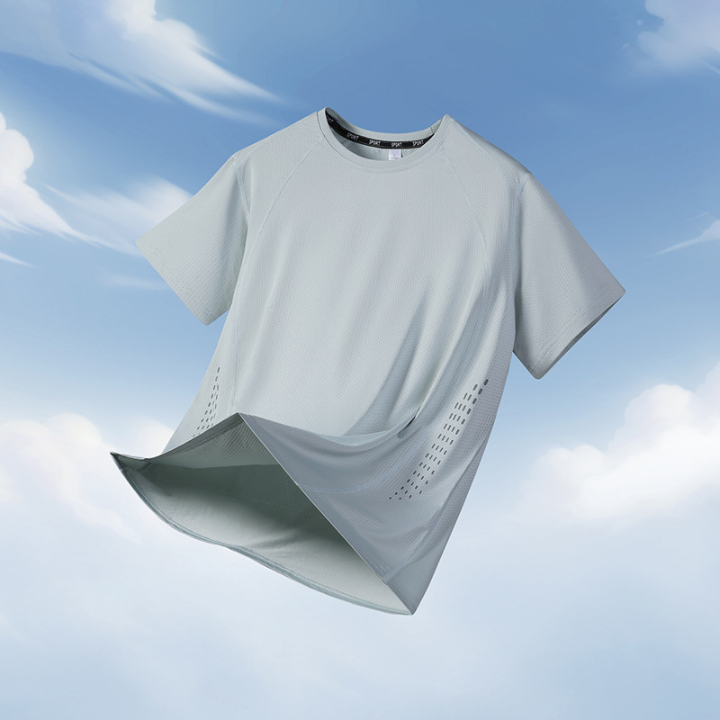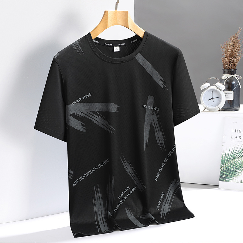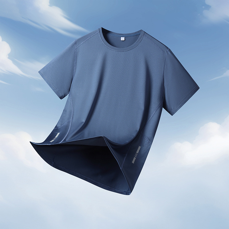 夏アイスシルク速乾半袖メンズカジュアルスポーツ通気性涼しい速乾Tシャツ薄手速乾スポーツ大きいサイズ