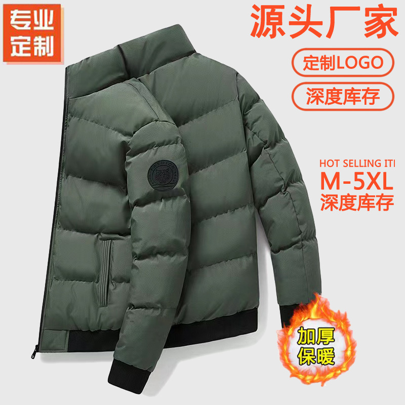 男性用のショートダウン綿服2024年の新型純色パン服青年冬の厚い立襟綿服コート