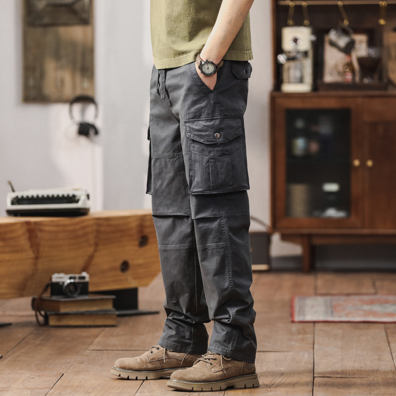 新型のアメリカ式のゆったりしたストレートのカジュアルなコンビネーションのズボンのファッションの男性のレトロな大きいポケットの美ラードのズボン