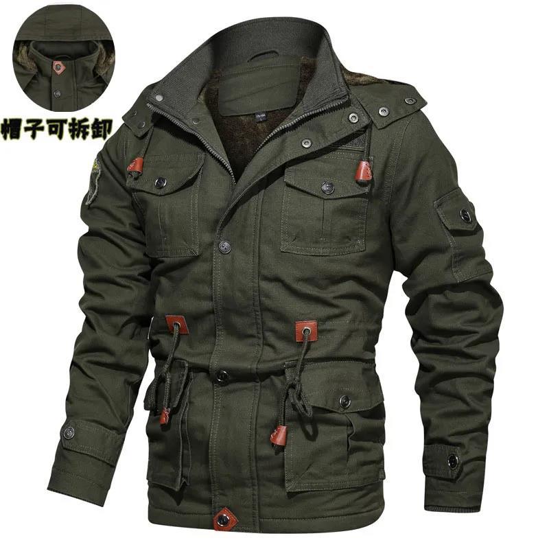 2024工装コート男ゆるい大サイズ秋冬多ポケット軍装綿格好いい立襟カジュアルジャケット