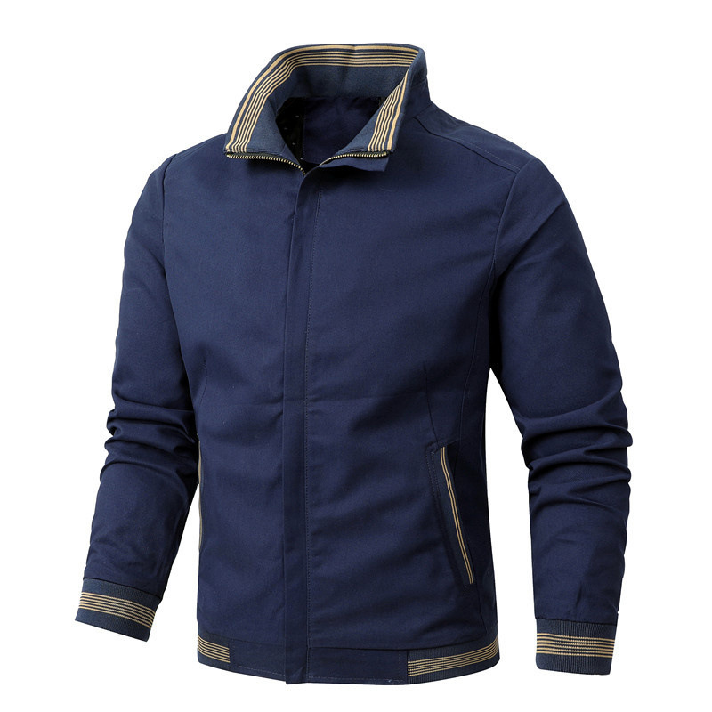 2025年春新作 サイドポケット付き ブルー 在庫あり ゆったりジッパー スリムフィット 若者向け 厚手コットン カジュアルジャケット