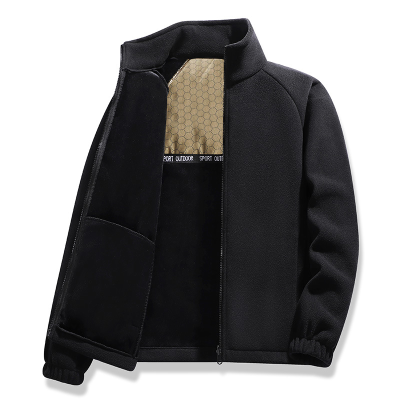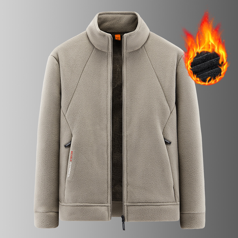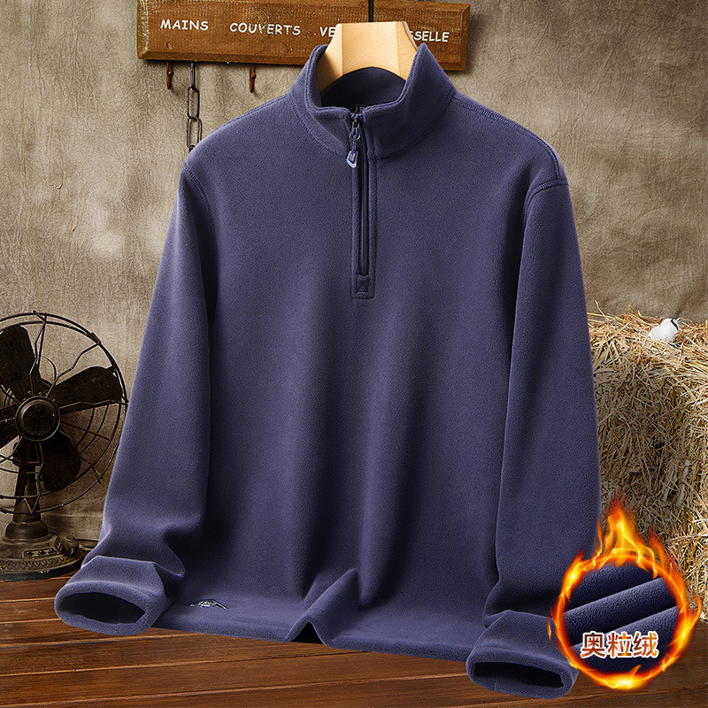 フリースの男性秋冬のベルベットは中年のお父さんのゆるいカジュアルな半ジッパーの立襟防寒コートを厚くした