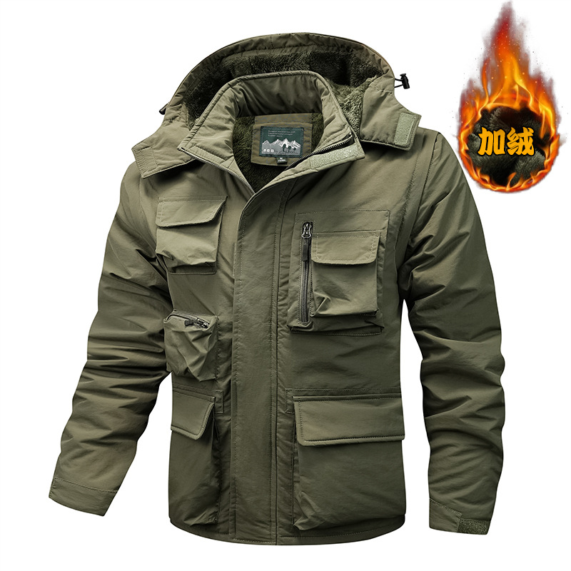 ベルベットは綿入れの上着を厚くして、男性の多ポケット工装コートは秋冬の保温の大きいサイズがゆったりしていて、内胆の綿服を取り外します。