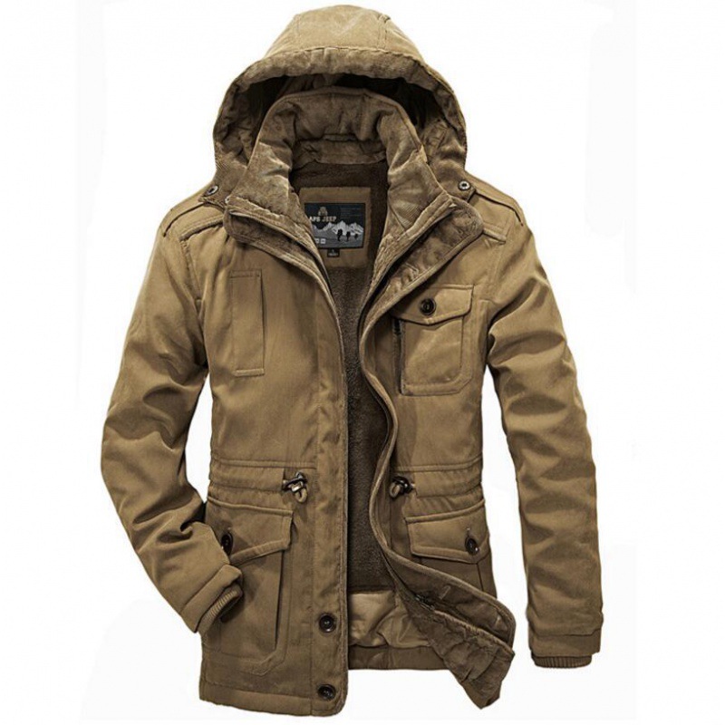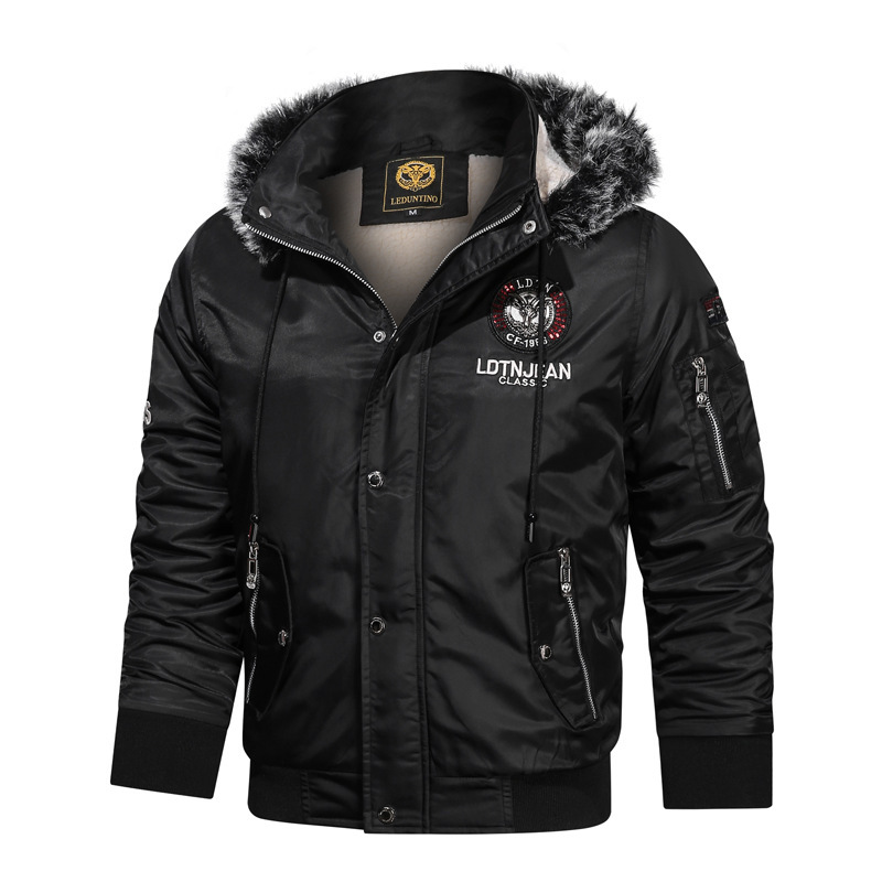 外国貿易の新商品は冬にベルベットしてカジュアルな男性の綿服を厚くして保温するファッションコートと帽子がゆったりしているコートを着ている