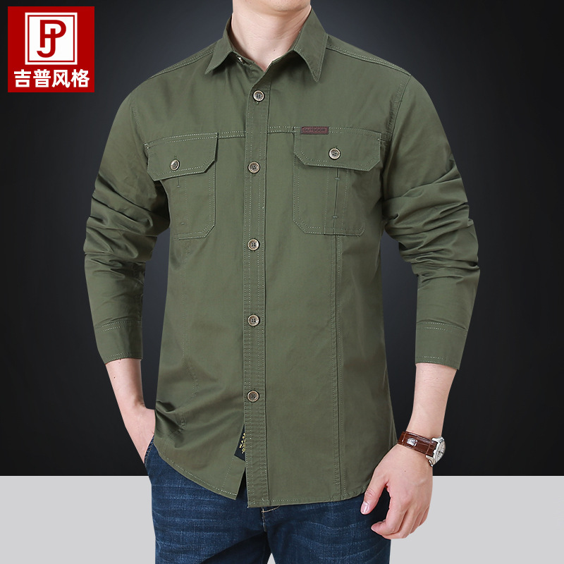 クロスボーダー外国貿易2024新型秋カジュアル純綿水洗いシャツ軍旅風大サイズ工装長袖シャツ潮
