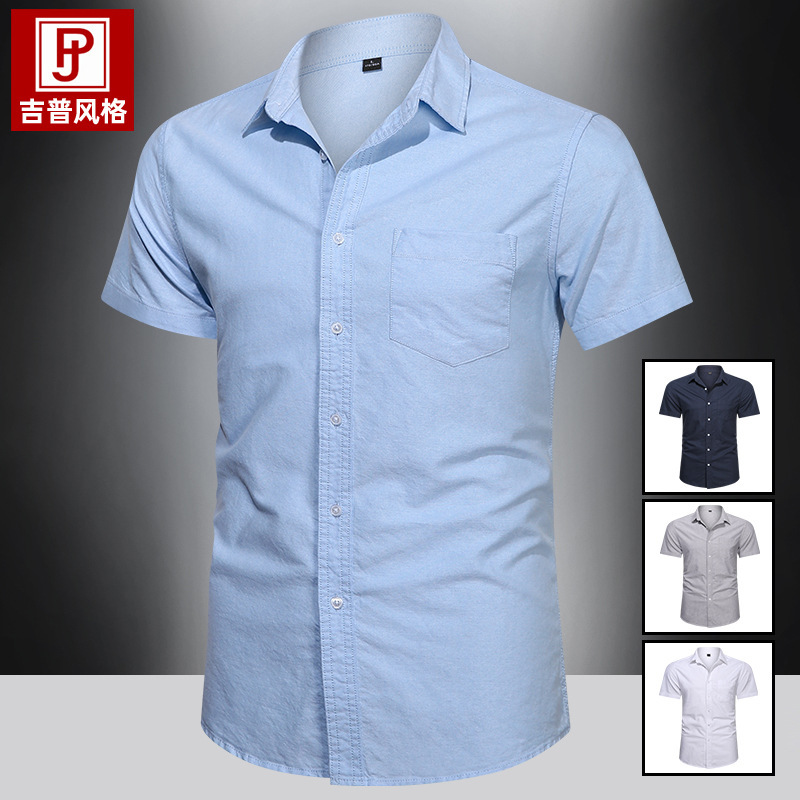 クロスボーダー2024夏男性半袖シャツカジュアル薄い襟付き純色ゆるい型スポット綿青年シャツ