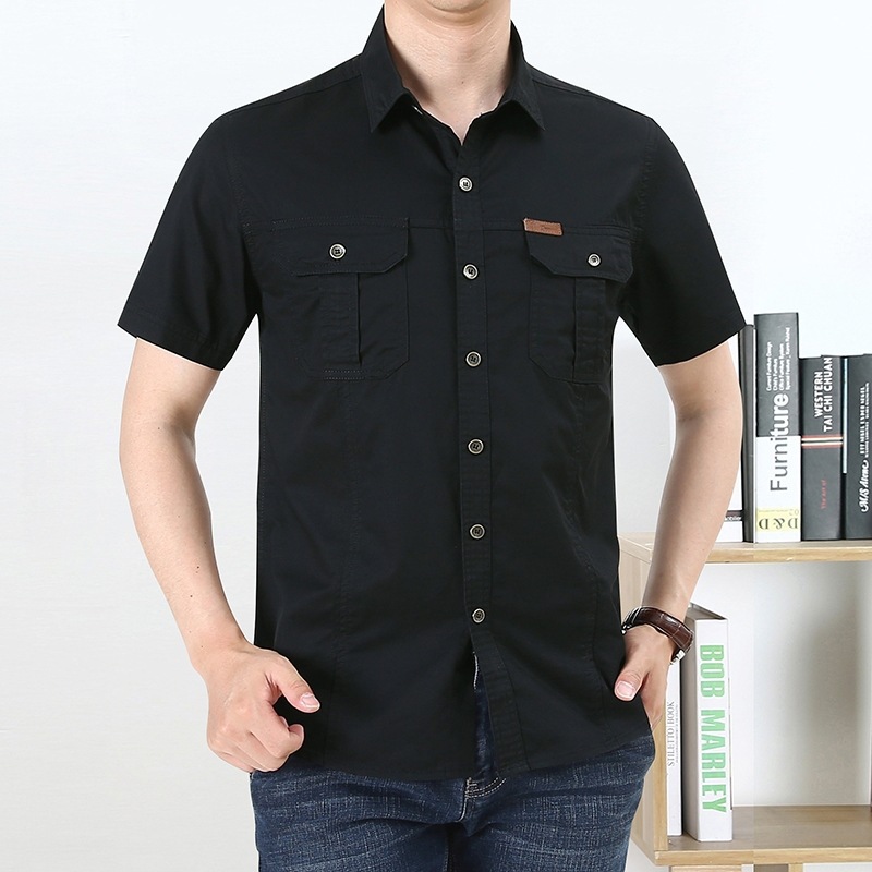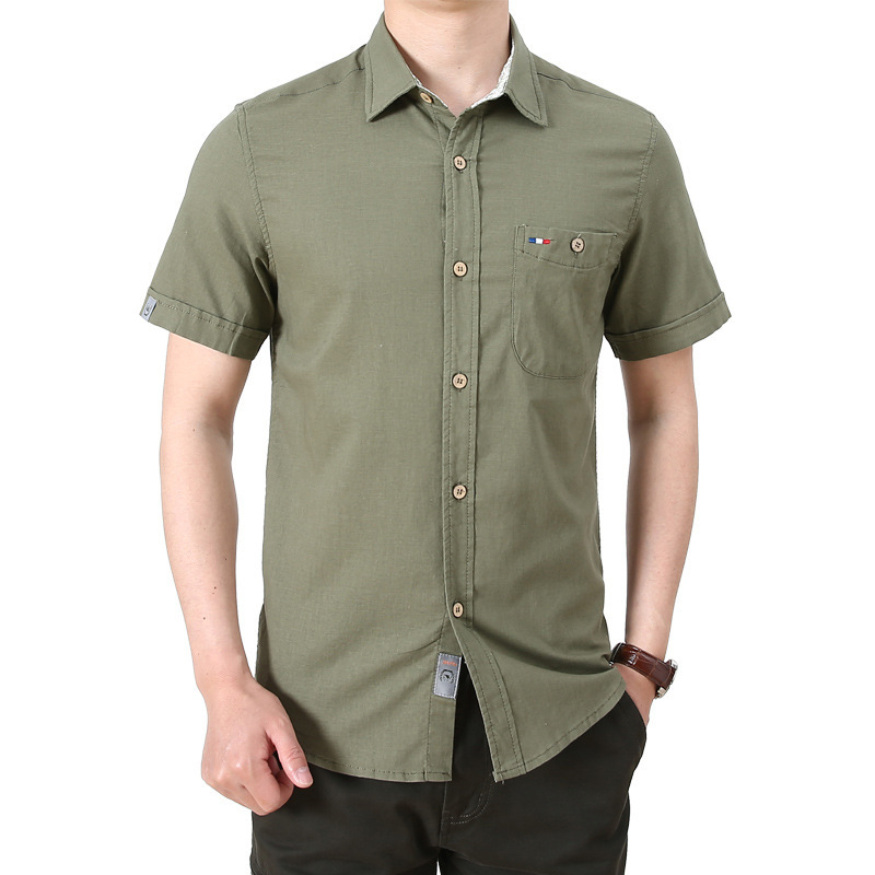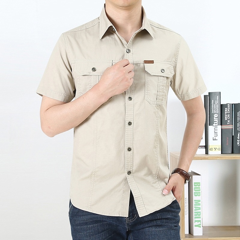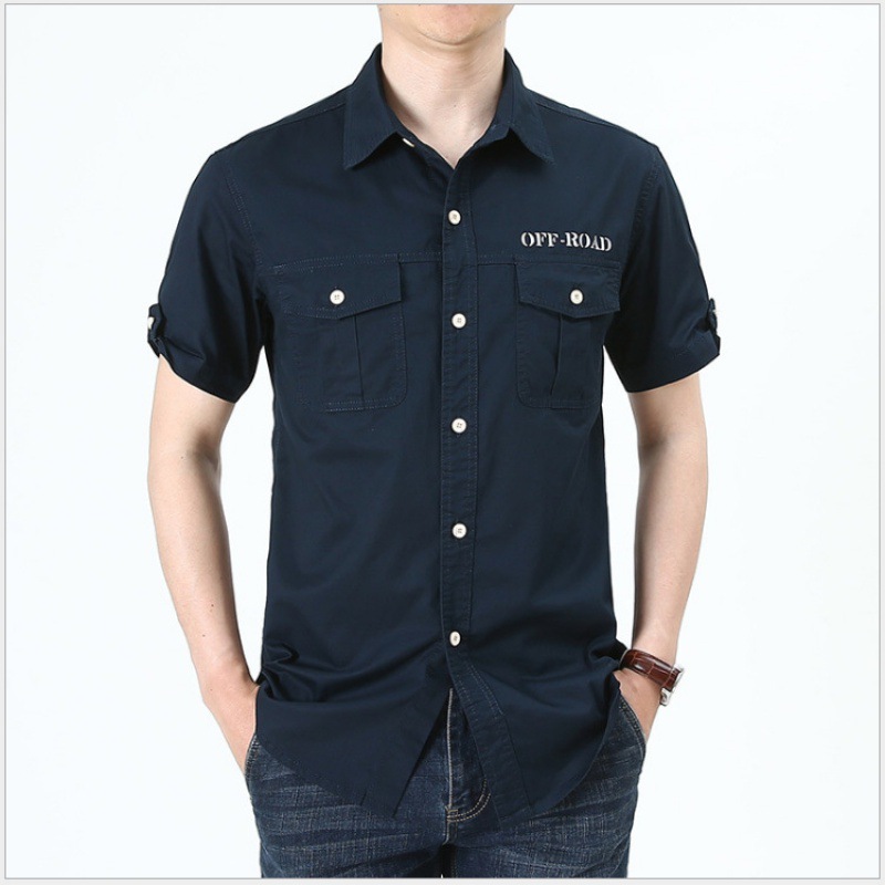 戸外工装シャツ男性半袖青年夏の薄い綿シャツの大きいサイズのカジュアルな男性ファッション上着