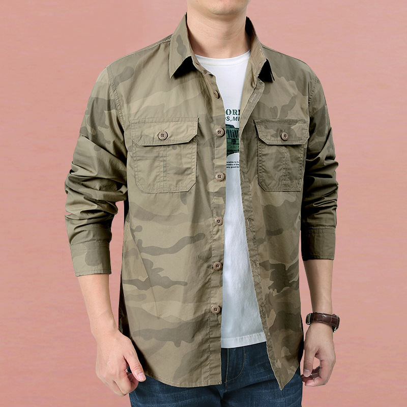 純綿の迷彩長袖シャツを水洗いします。男性ファッションで快適です。