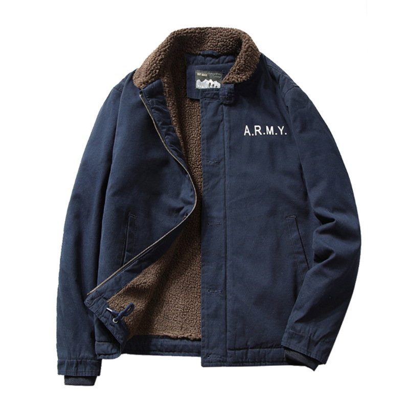 越境冬n 1甲板服綿入れの綿入れの服の中年の厚いベルベットの工装のジャケットのレトロな羊の小毛のコートの男