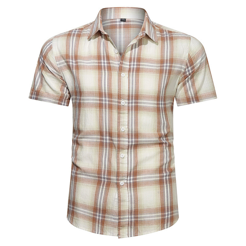 男性工装ゆるい半袖シャツ男2024夏のカジュアルな襟綿の快適な格子シャツ男潮