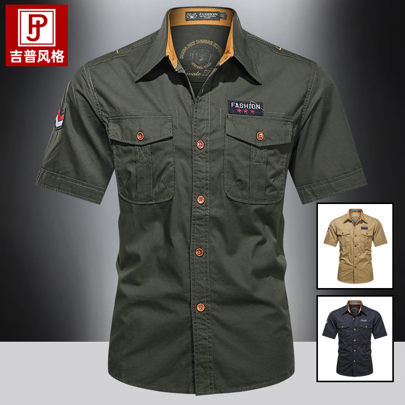 クロスボーダー速売通夏の新型半袖大サイズ男性シャツ潮戸外工装カジュアルファッションシャツ男性服