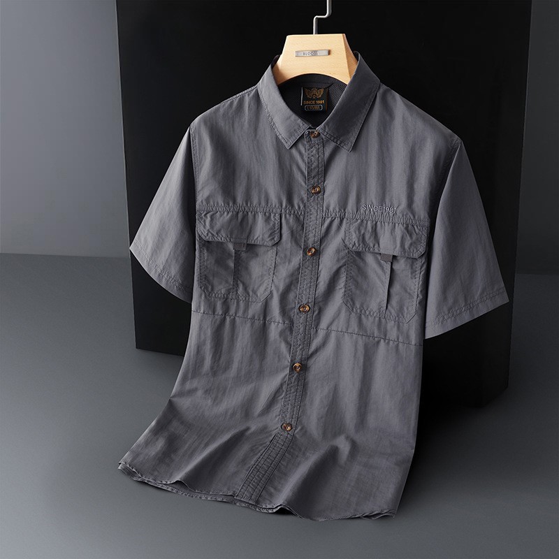 2024年夏の新型アウトドア速乾薄い半袖シャツの中で青年のお父さんはカジュアルなシャツの男を着ます。