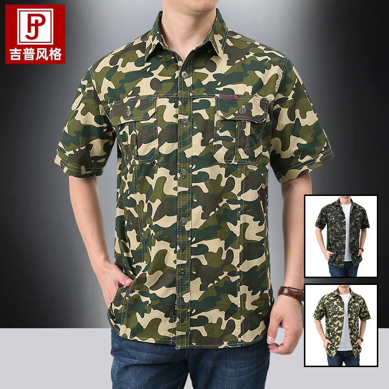 2024夏の新型迷彩軍服半袖シャツカジュアル薄手多ポケット純綿カジュアル工装シャツブーム