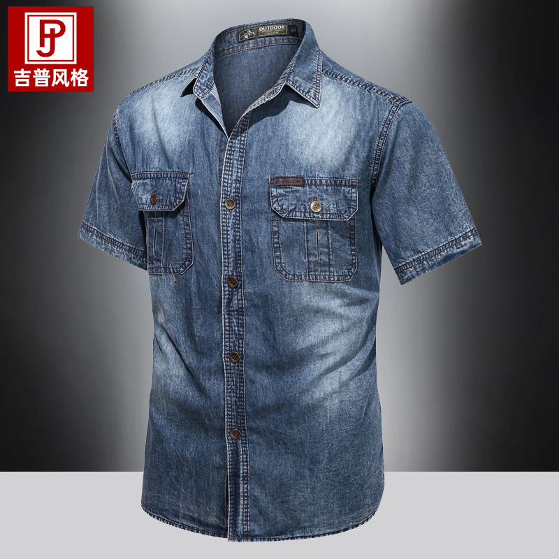 2024夏の新型カウボーイ半袖男性シャツカジュアルファッション個性男性カウボーイコート半袖シャツ服