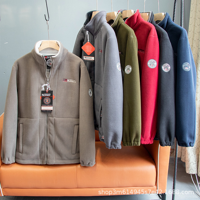 ノルウェーのシングルとベルベットを輸出して両面のフリースを厚くした男性秋冬保温カジュアルなゆるいコート