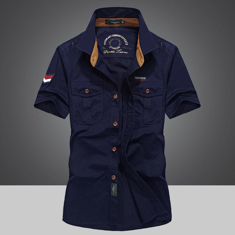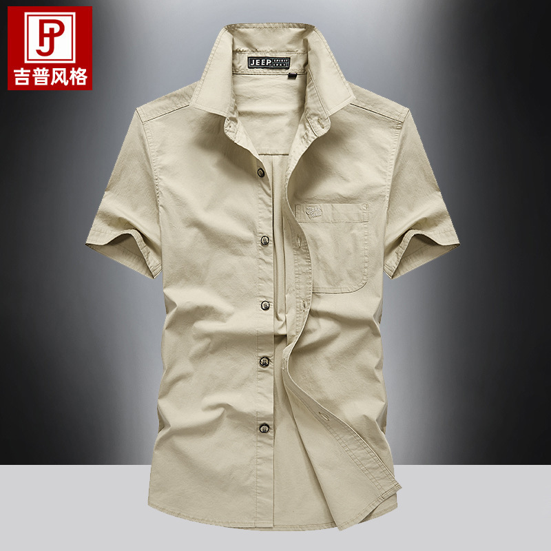 男性カジュアルゆったり半袖シャツ新型ビッグサイズ純色中青年シャツ夏工装ポケット金