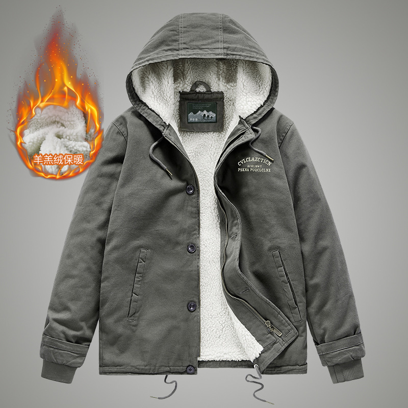 越境秋冬の甲板服の綿入れの綿入れの服の中年の厚い加毛の工装のジャケットの復古の羊の小毛の上着の男