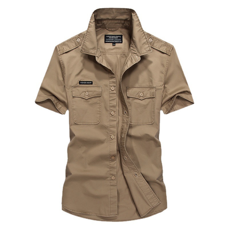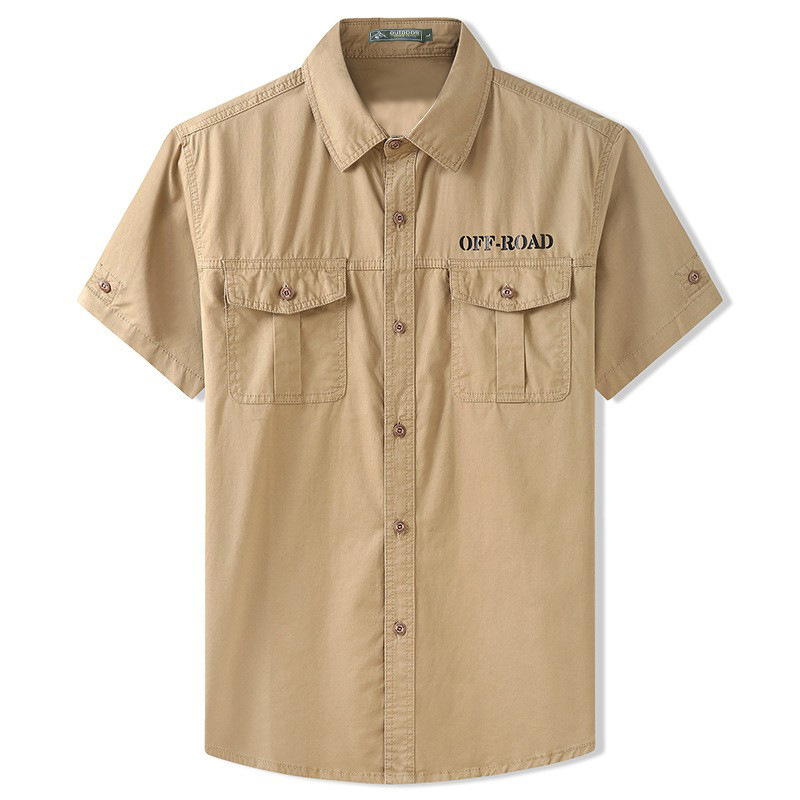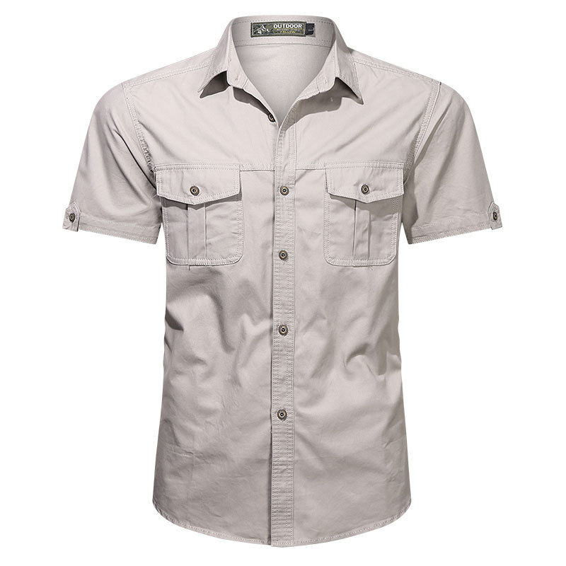 アメリカのレトロな工装シャツの男性の大きいポケットの重いポンドの阿美カチカチの潮流の百合の純綿の半袖のシャツの薄い金