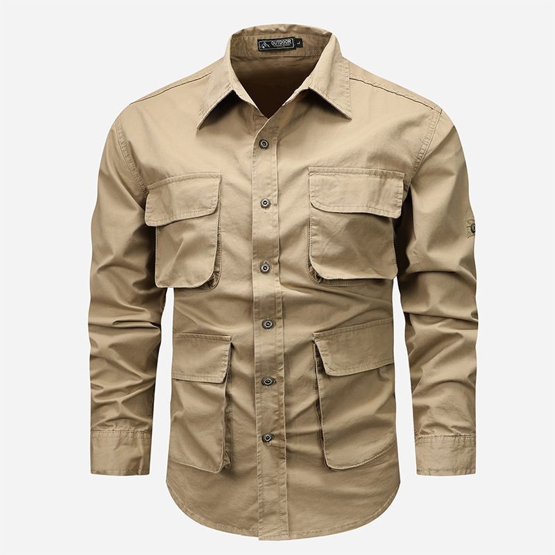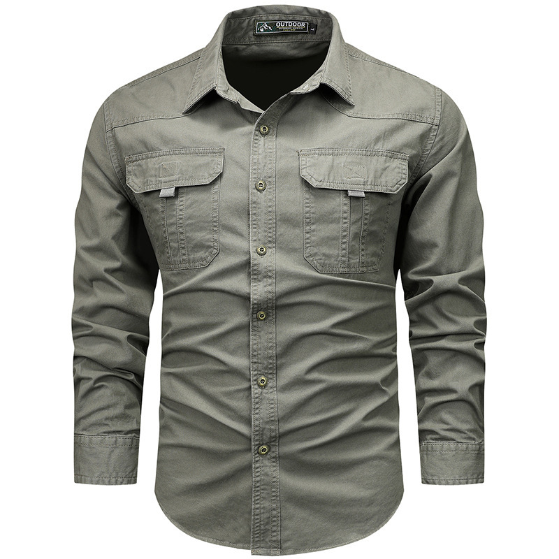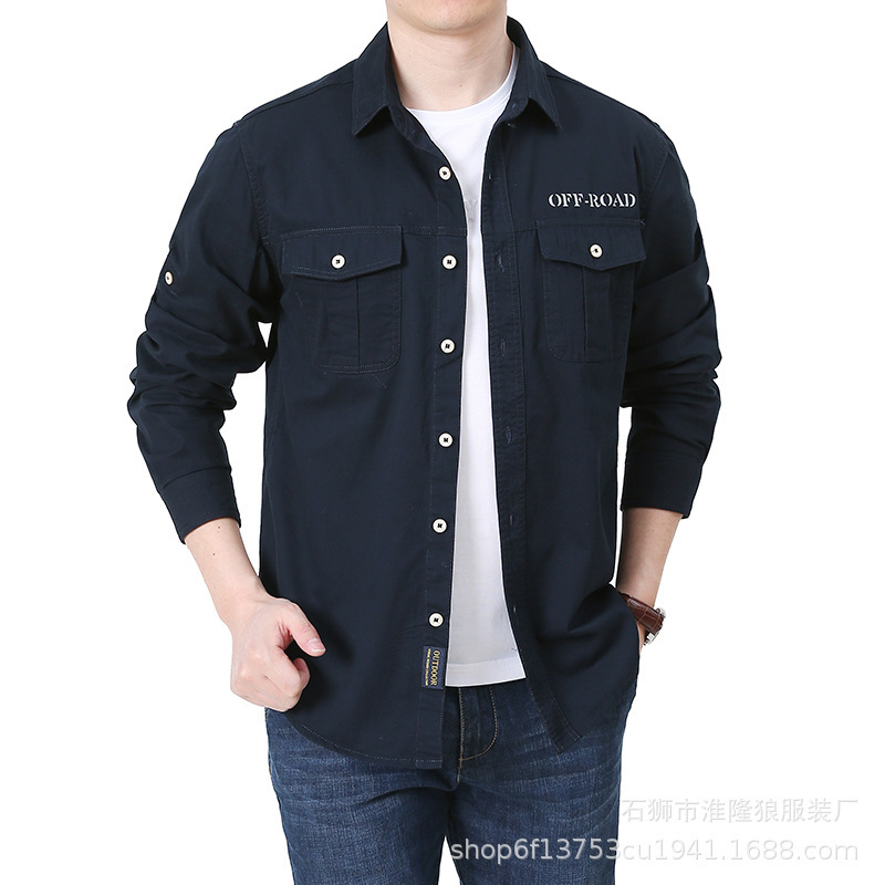 2024春秋の新型男性屋外カジュアル純綿工装長袖シャツ中青年ゆるいシャツ薄手