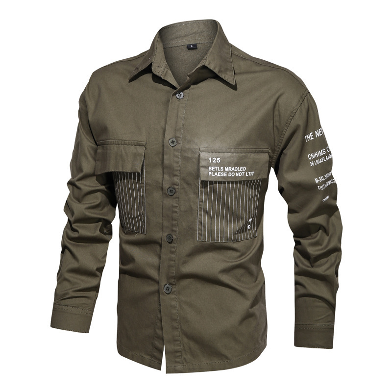 クロスボーダー速売通春秋新型欧米男性純綿長袖シャツwish秋メンズシャツ軍旅風