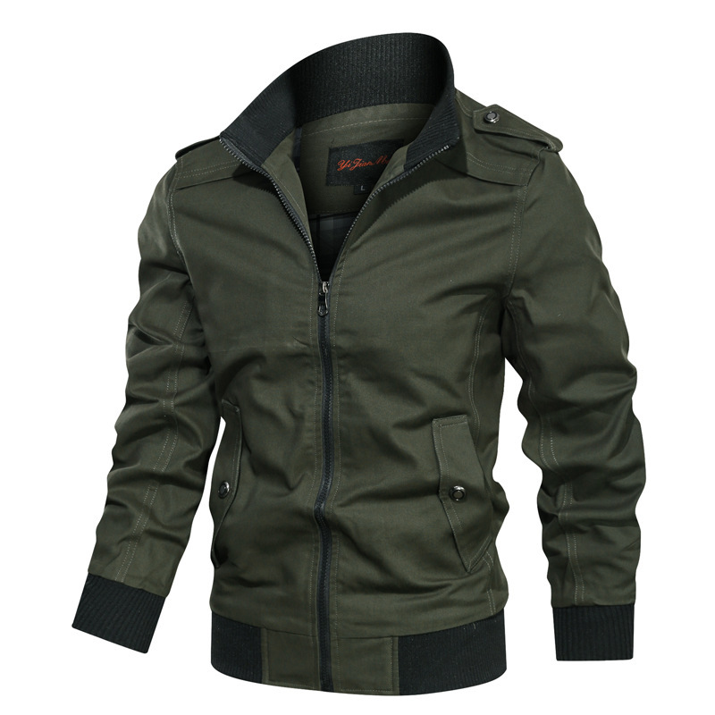 クロスボーダー紳士服速売通2024新型青年韓国版純綿ジャケット修身立襟純色工装コート男