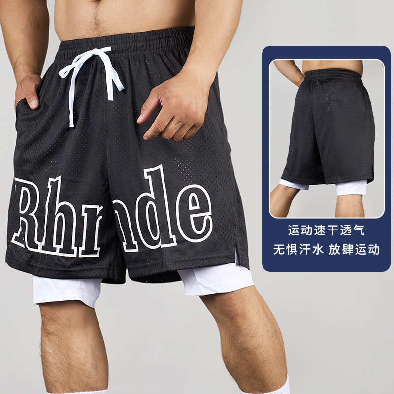 クロスボーダーアメリカンバスケットボールショーツメンズフェイクツーピースボールパンツ5点パンツ速乾性通気性ルーズフィットネストレーニングスポーツパンツ